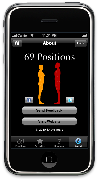 Today version 1.1 of 69 Positions was released on the App Store. This update features a passcode lock to secure the app, which can be set and unset on the About page. Be sure to check out the App Store for this update!