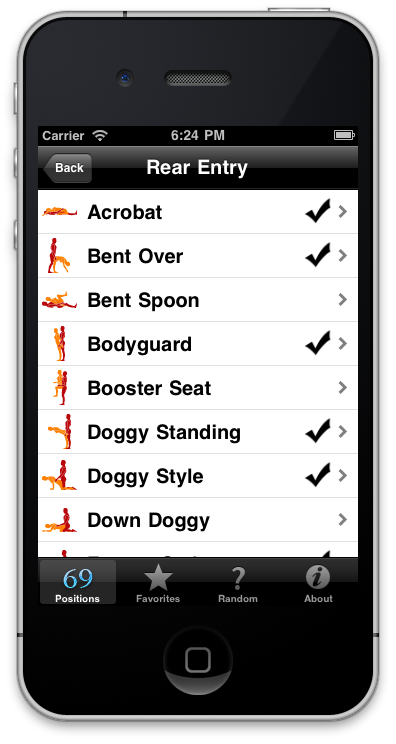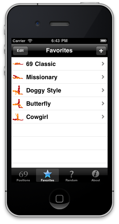 69 Positions is the ultimate illustrated guide to sex positions for the iPhone and iPod touch. Don't be fooled by cheap Kamasutra imitations, 69 Positions is the real deal. 69 Positions features 115 excellent positions that have spiced up the love lives of couples around the world. This app will let you brush up on all the classics, while adding many new and exciting positions to your repertoire.